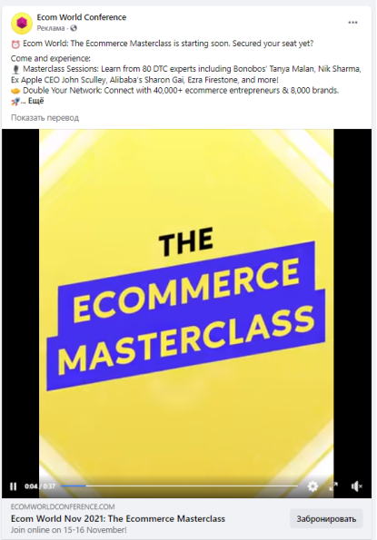 Пример рекламы в Facebook, видео-реклама